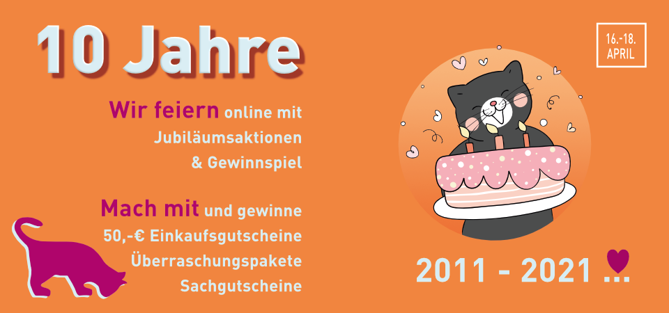 Am 16. April 2011 habe ich eröffnet und die Zeit ist wirklich schnell, wenn auch nicht immer krisenfrei vergangen. Ich bedanke mich bei dir für deine Treue. Du trägst dazu bei, dass die Katze nun die nächsten 10 Jahre in den Blick nehmen kann und es das kleine Fachgeschäft auch zukünftig in deiner Nähe geben wird.