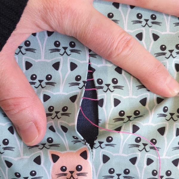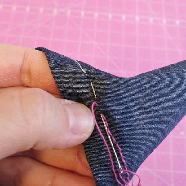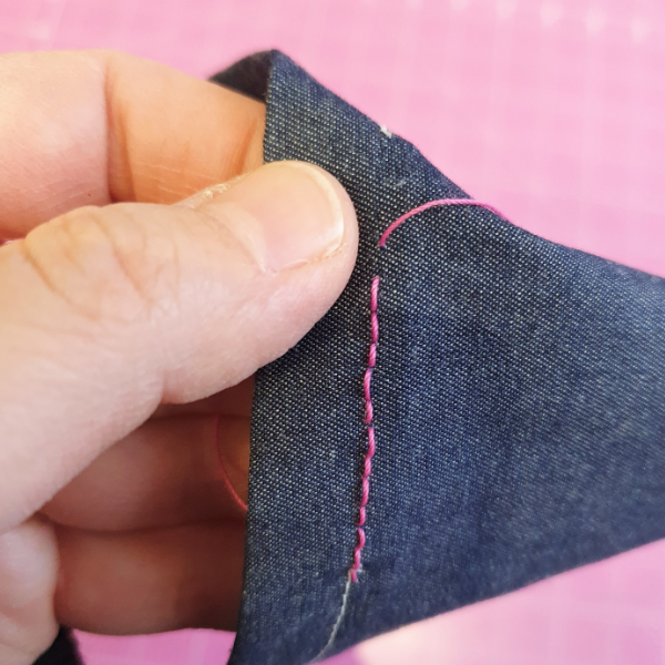Der Matratzenstich wird auf der rechten Stoffseite im Stoffbruch gearbeitet. Wenn möglich, legst du dir die beiden Nahtseiten aufeinander.