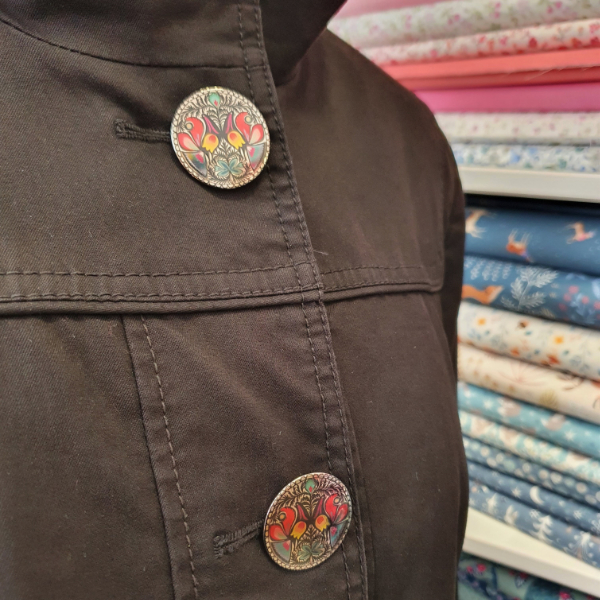 • Idealerweise hast du dein Kleidungsstück bei der Knopfauswahl dabei. So kannst du Größe, Form, Farbe und Stil passend aussuchen.