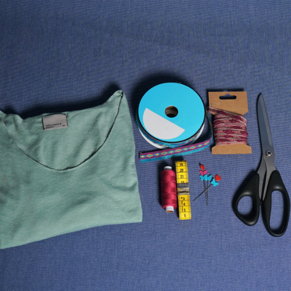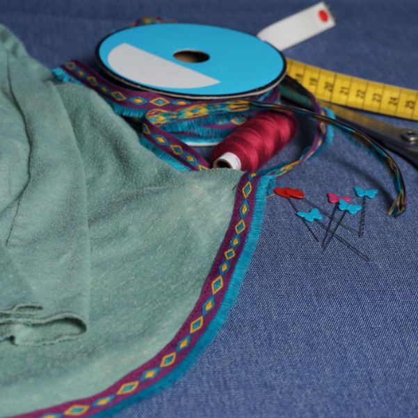 • eine Borte in der passenden Länge (2x die Breite deines Saums + Nahtzugabe)