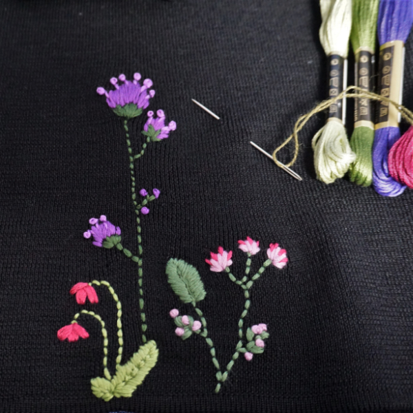• Eine einzelne Blume wirkt oft etwas verloren. Wenn du dich für kleine Motive entscheidest, sticke am besten mehrere.
