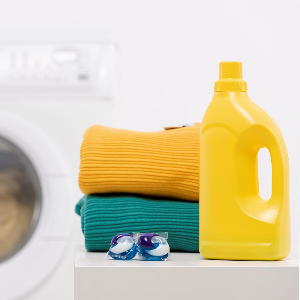 Nutze immer die kleinstmögliche Waschmittelmenge. Das probierst du am Besten einfach aus. Gehe so weit mit der Dosierung nach unten bis deine Wäsche nicht mehr sauber wird. Du wirst überrascht sein, wie wenig Waschmittel du eigentlich brauchst. Auf vordosierte Waschmittel wie Tabs oder Pods solltest du ganz verzichten. Das mögen Geldbeutel, Umwelt und auch deine Klamotten. 😉
